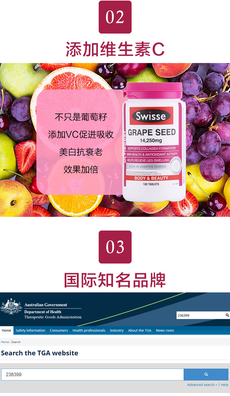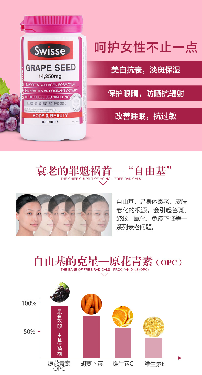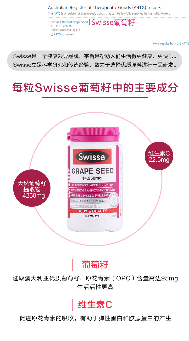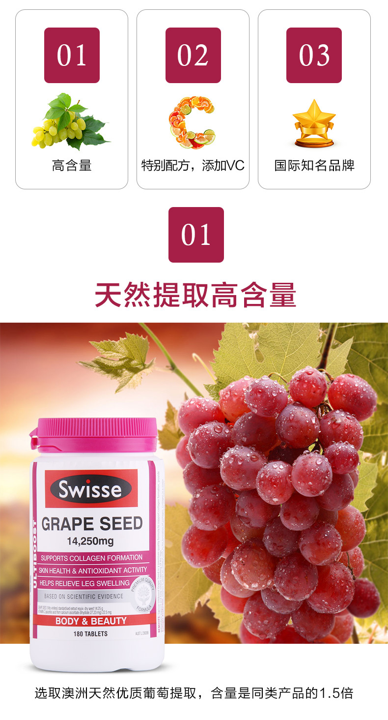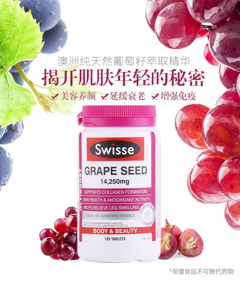 【澳洲仓】Swisse Grape Seed 葡萄籽180粒