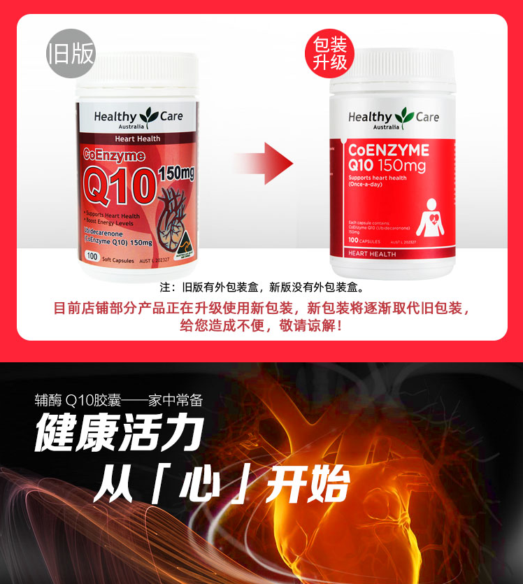 【澳洲仓】【热卖】Healthy Care HC Q10 150mg 100粒 辅酶Q10软胶囊 保护心脏