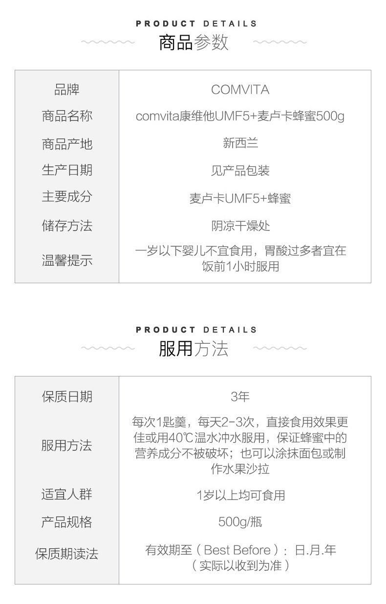 【澳洲仓】下架 【澳洲直邮】COMVITA康维他蜂蜜 UMF5+ 500g(泡)