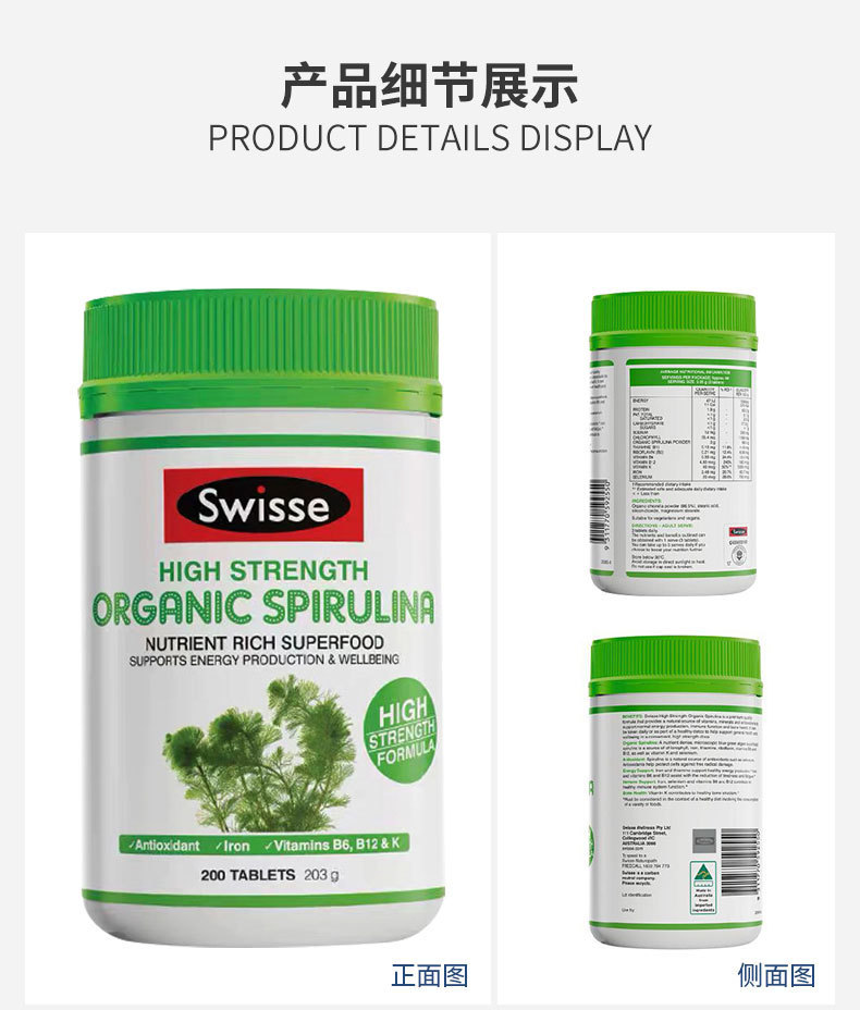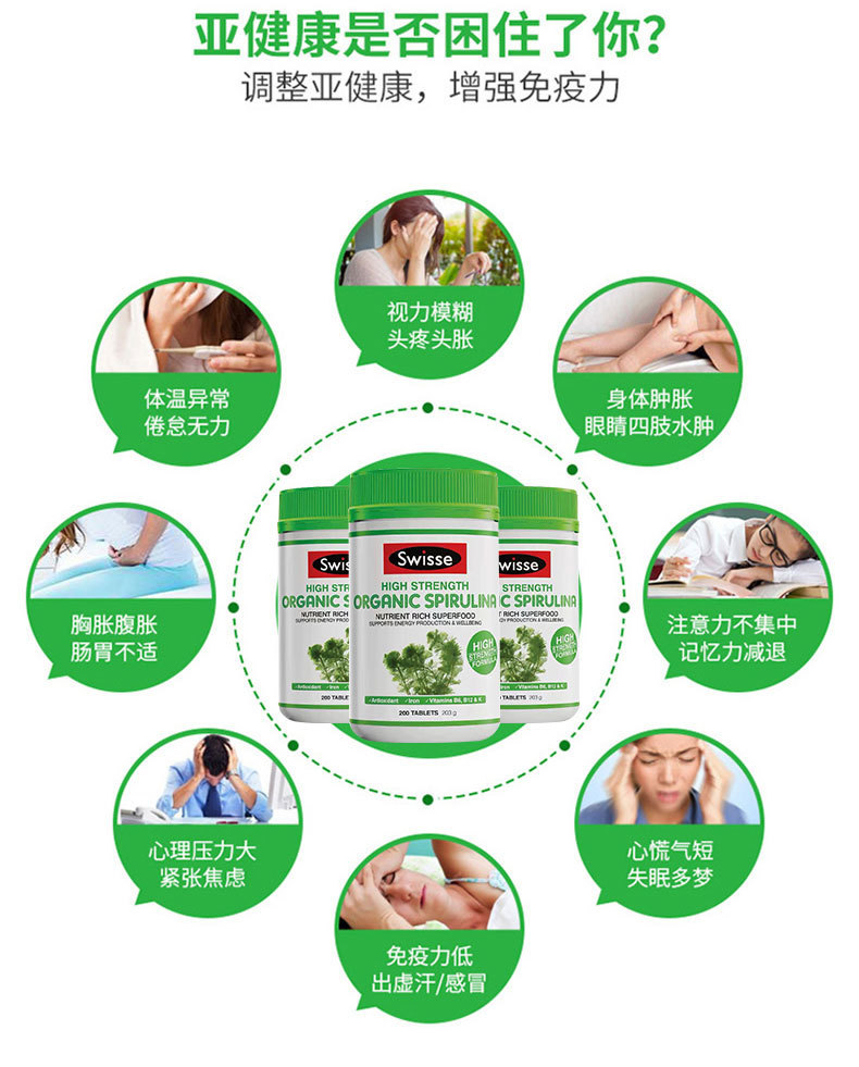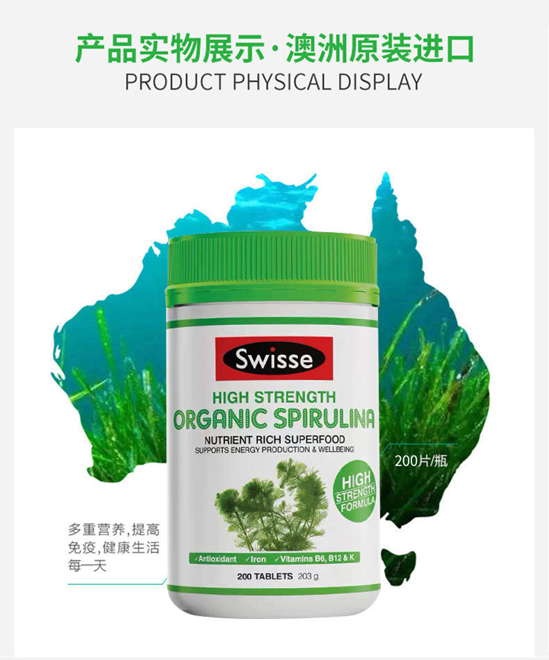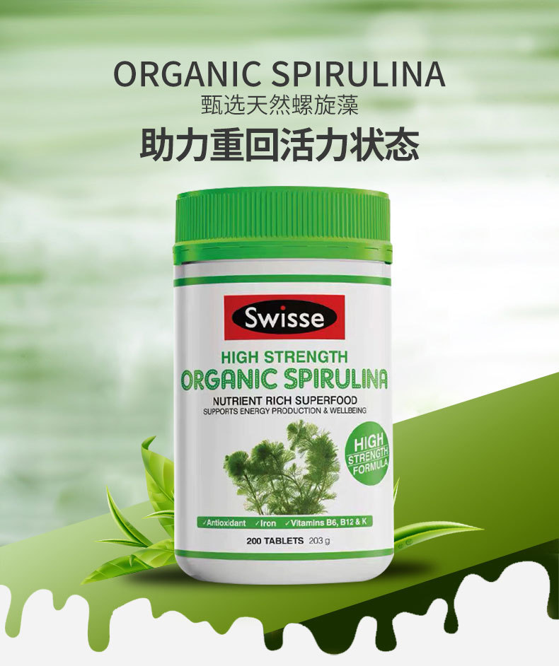 【澳洲仓】【三件及以上包邮 】Swisse Spirulia高浓度螺旋藻200片 提高抵抗力抗疲劳保健排毒营养 2023/11