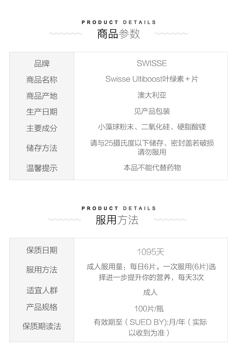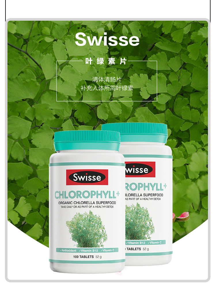 【澳洲仓】【三件及以上包邮 】Swisse 叶绿素片100片 美容养颜调理肠胃排毒清体改善气色2022/1/1