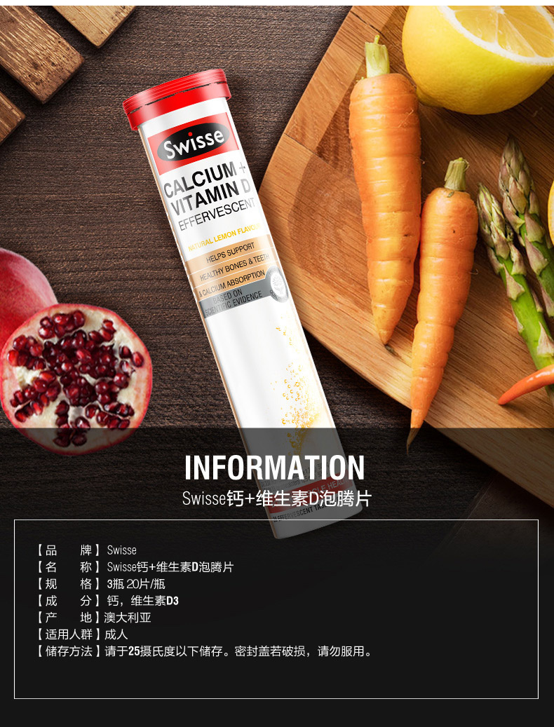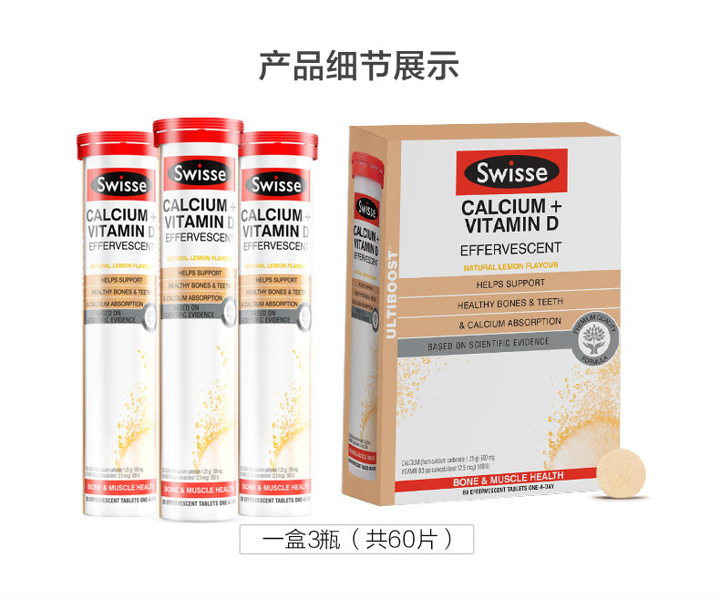 【澳洲仓】【三件及以上包邮 】Swisse 钙+维生素D泡腾片60片 液体钙成人孕妇中老年补钙柠檬口味2021年6月