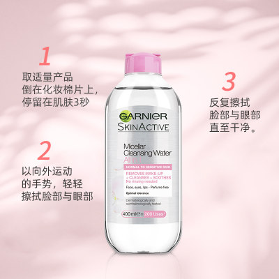 【澳洲仓】GARNIER卡尼尔3合1面部眼唇温和清爽洁肤卸妆水粉瓶 适合所有肤质Micellar Cleansing Water400ml