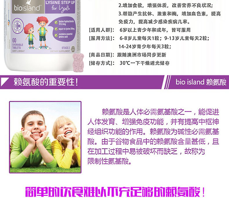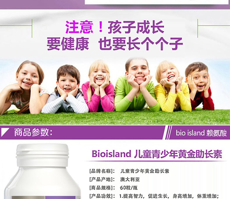【澳洲仓】BIO ISLAND 青少年长高黄金助长素2段 60粒