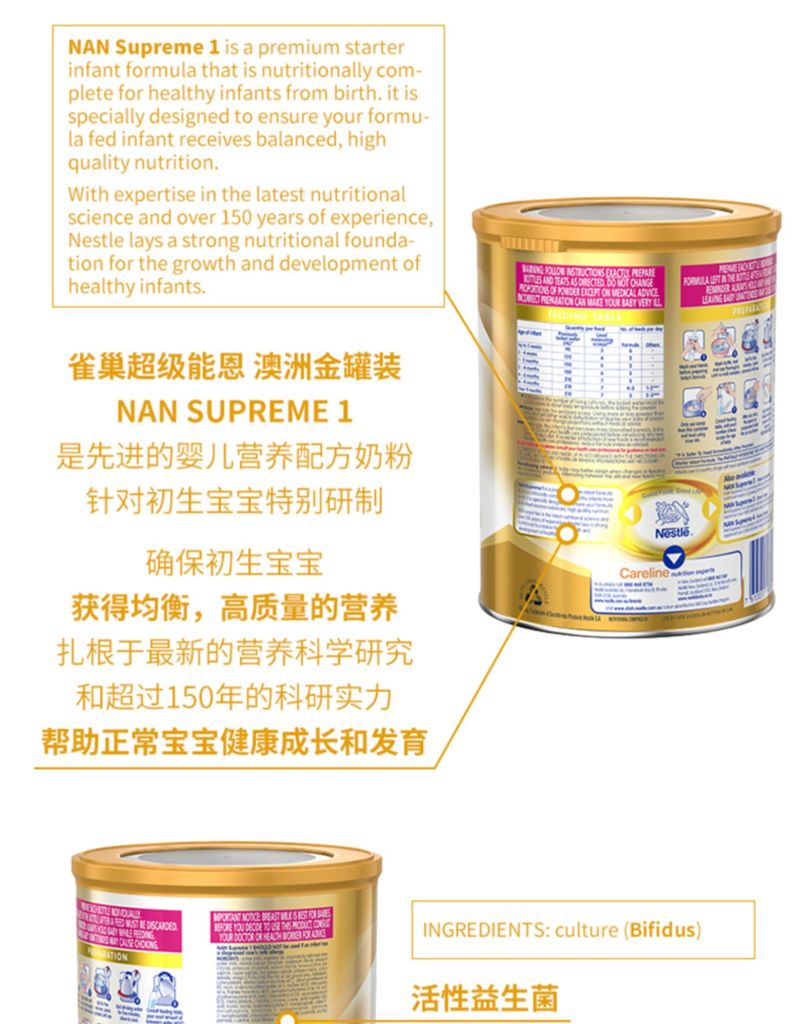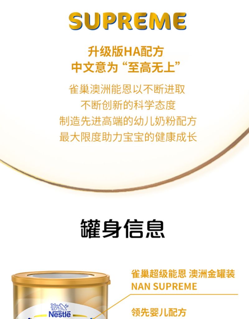 【澳洲仓】下架【3罐】雀巢Nestle supreme奶粉 超级能恩1段 适度水解半水解 800g