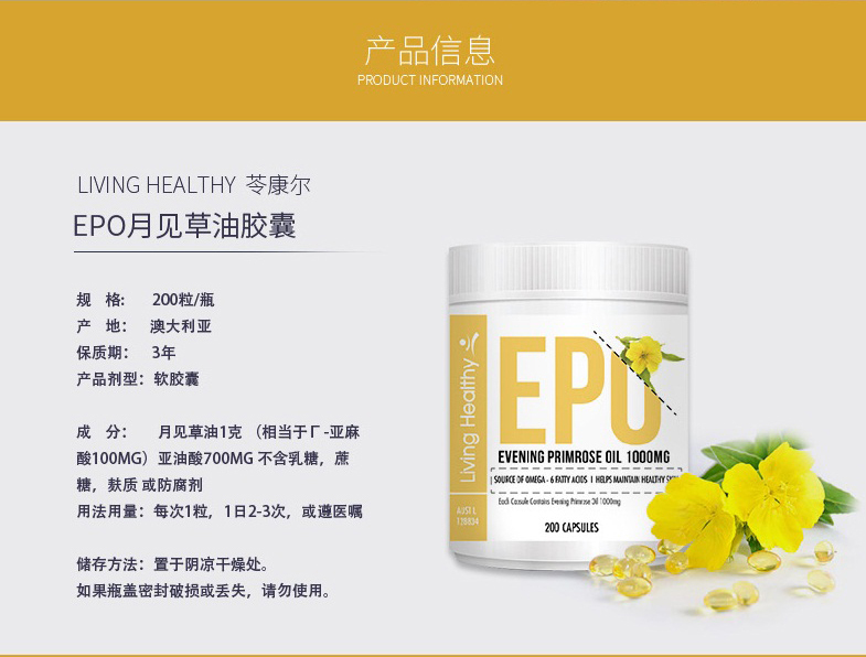 【澳洲仓】Living Healthy 苓康尔 月见草胶囊调节女性内分泌1000mg 200粒