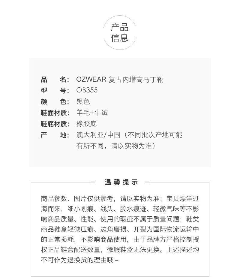 【澳洲仓】【任意两双65刀】OZWEAR UGG OB355 秋冬 复古系带内增高女款马丁靴(下单联系客服改价)