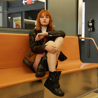 【澳洲仓】OZWEAR UGG OB354 秋冬 时尚个性奢华兔毛系带中筒羊皮厚底靴