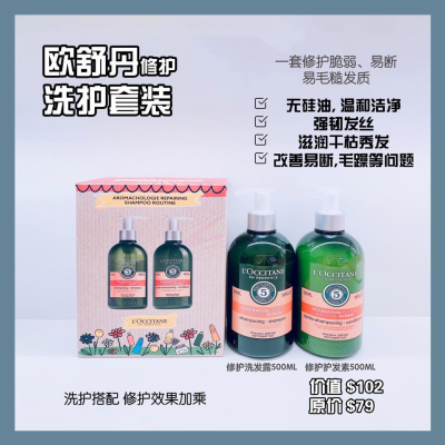 【澳洲仓】欧舒丹修护洗护套装(修护洗发露500ml+修护护发素500ml)